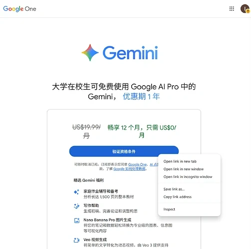 • 今天教大家如何无纯净ip开通 Gemini 学生会员。(所有用到的链接放在最后)